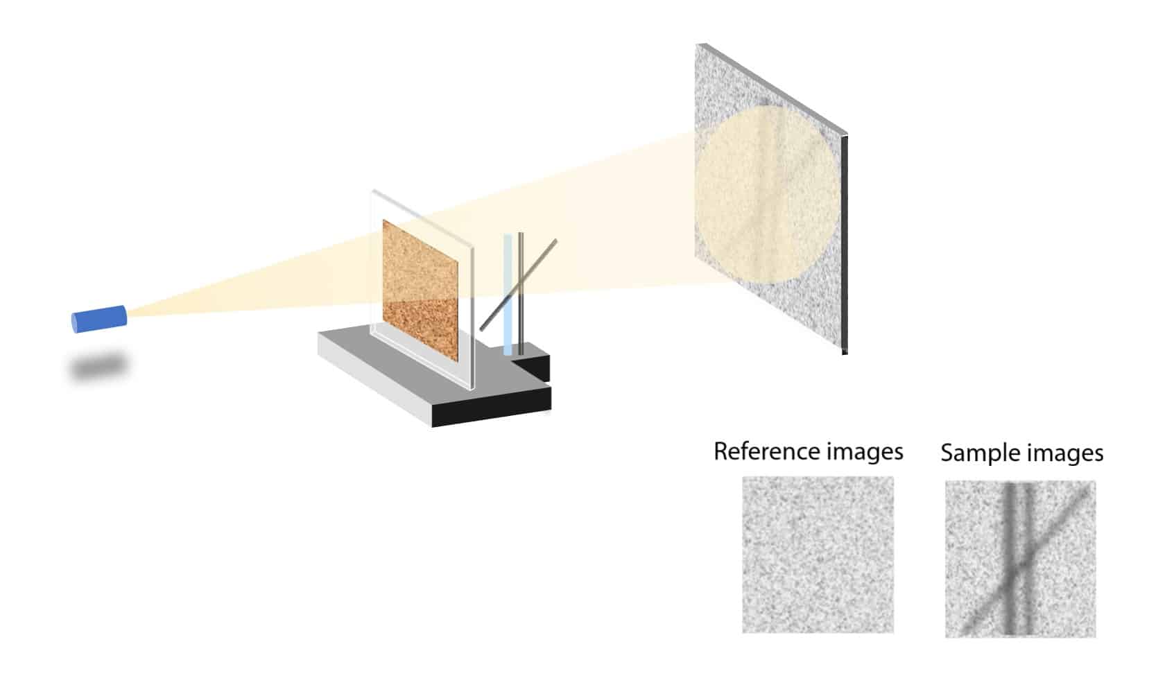 Figure 1. Schematic of a speckle-based X-ray imaging setup showing reference and sample images.