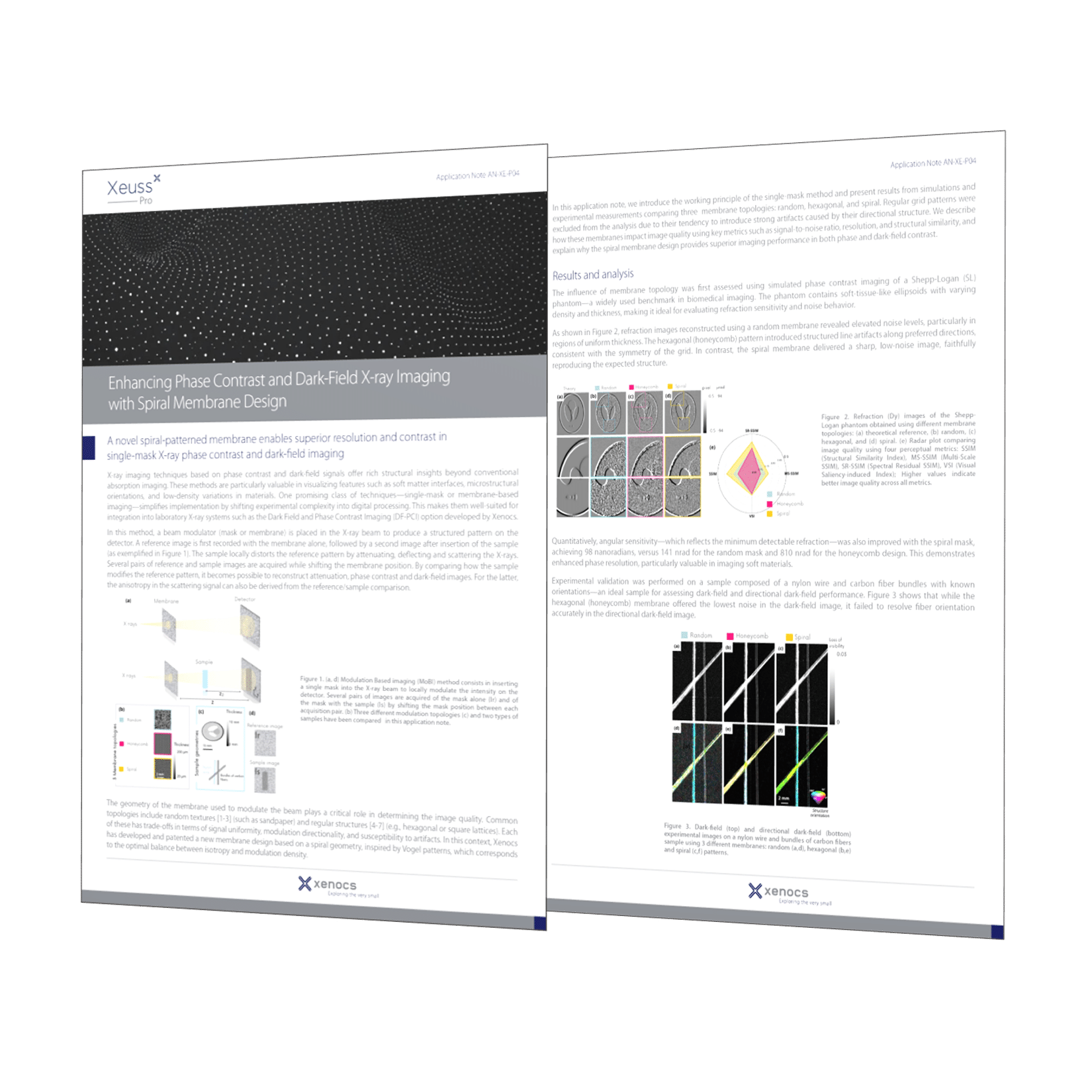 X-ray imaging techniques based on phase contrast and dark-field signals offer rich structural insights beyond conventional absorption imaging. These methods are particularly valuable in visualizing features such as soft matter interfaces, microstructural orientations, and low-density variations in materials. One promising class of techniques—single-mask or membrane-based imaging—simplifies implementation by shifting experimental complexity into digital processing. This makes them well-suited for integration into laboratory X-ray systems such as the Dark Field and Phase Contrast Imaging (DF-PCI) option developed by Xenocs.