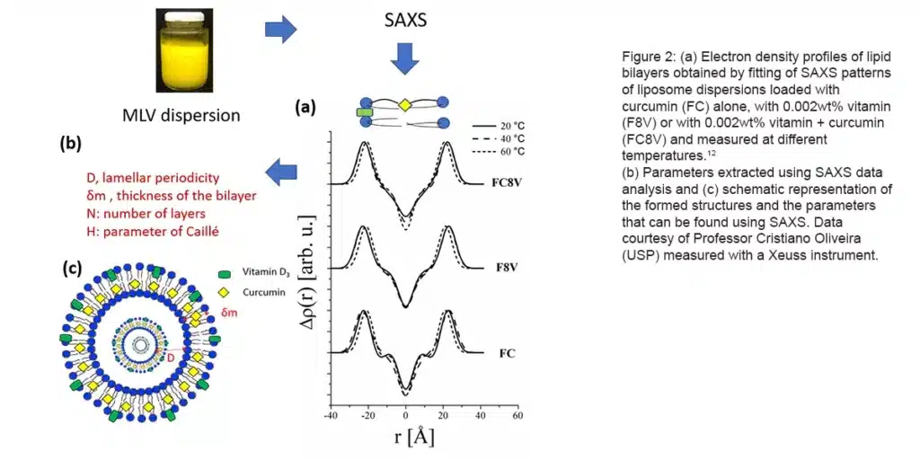Recent research by a team of Brazilian scientists describes a system designed to deliver Vitamin D3 and curcumin co-encapsulated together in liposomes. The research team used SAXS to investigate the effects of temperature and nutrient loading on the structure and properties of the final liposomes.