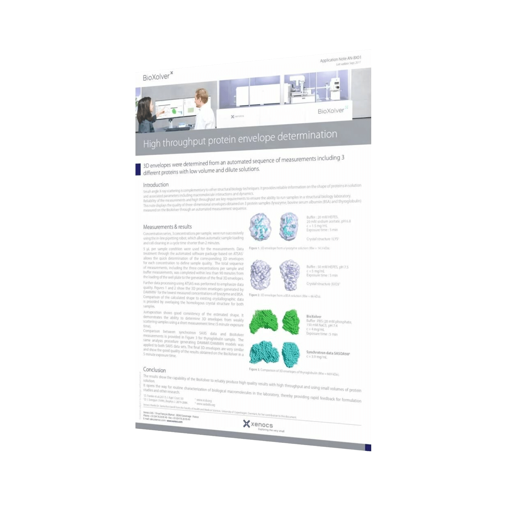 This note displays the quality of three-dimensional envelopes obtained on 3 protein samples (lysozyme, bovine serum albumin (BSA) and thyroglobulin) measured on the BioXolver through an automated measurement sequence.