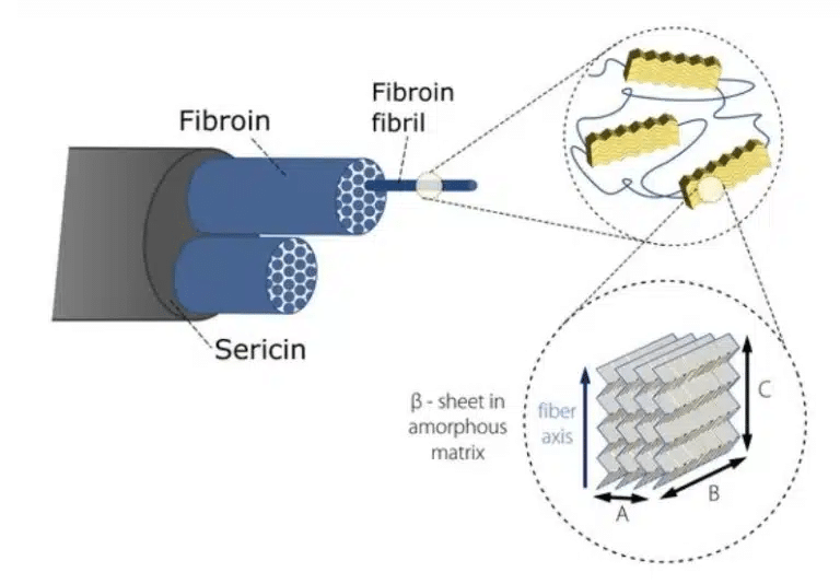 Figure 1. Hierarchical structure of Bombyx Mori silk (representation inspired by [3, 4]).