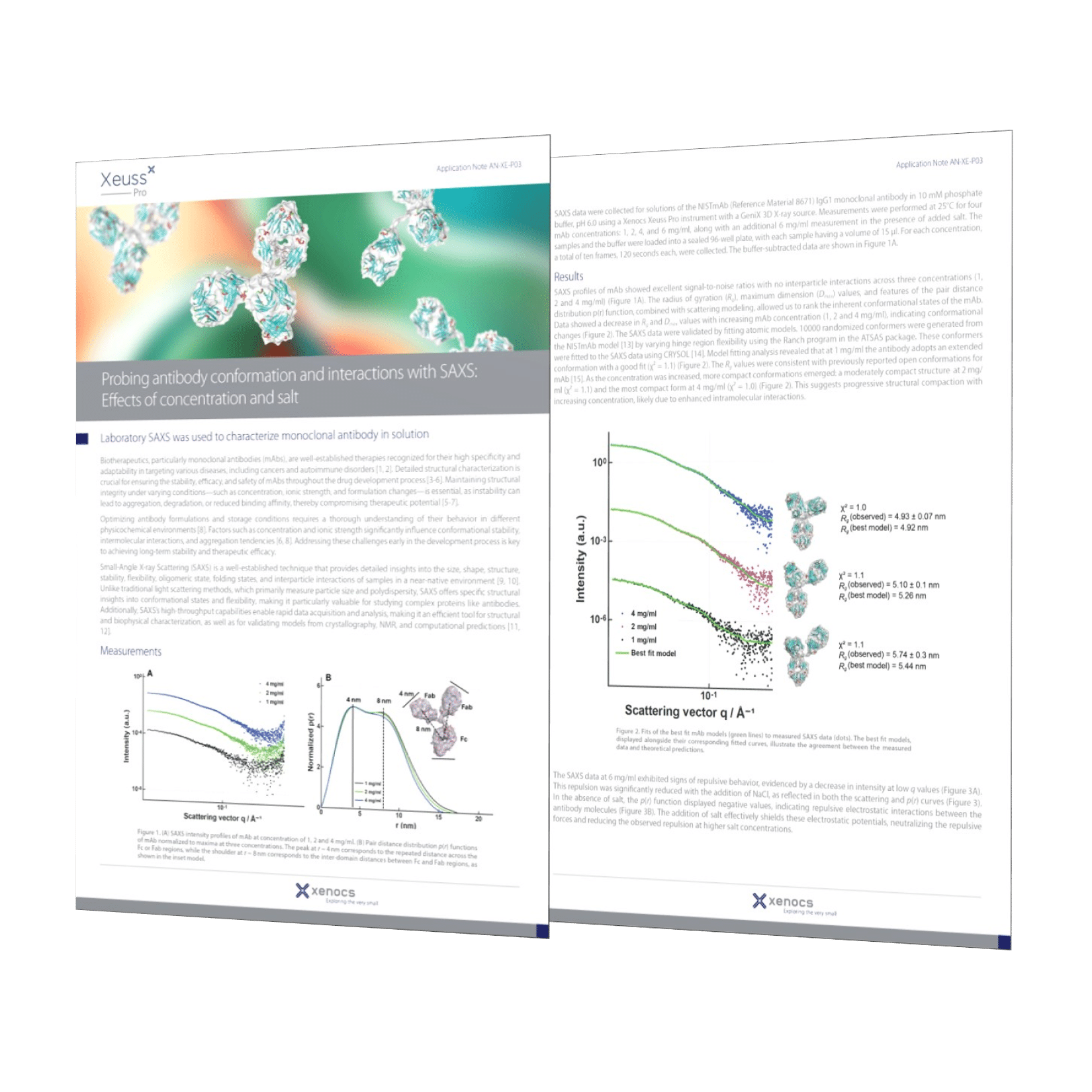 Small-Angle X-ray Scattering (SAXS) is a well-established technique that provides detailed insights into the size, shape, structure, stability, flexibility, oligomeric state, folding states, and interparticle interactions of samples in a near-native environment [9, 10]. Unlike traditional light scattering methods, which primarily measure particle size and polydispersity, SAXS offers specific structural insights into conformational states and flexibility, making it particularly valuable for studying complex proteins like antibodies. Additionally, SAXS’s high-throughput capabilities enable rapid data acquisition and analysis, making it an efficient tool for structural and biophysical characterization, as well as for validating models from crystallography, NMR, and computational predictions [11, 12].