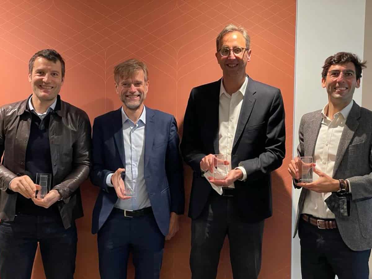 From left to right: Frédéric Bossan and Peter Høghøj from Xenocs, Jean-Luc CYROT and Raphael Horreard from Capza Growth Tech during closing of the investment agreement.