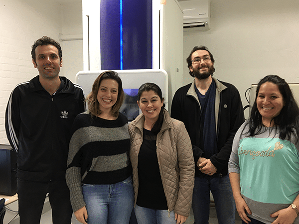 From left to right: Rodrigo Barbieri, Ferndanda Dias, Melissa Rodrigues, Cesar Aguzzoli and Nayrim Brizuela with the Nano-inXider from Xenocs.