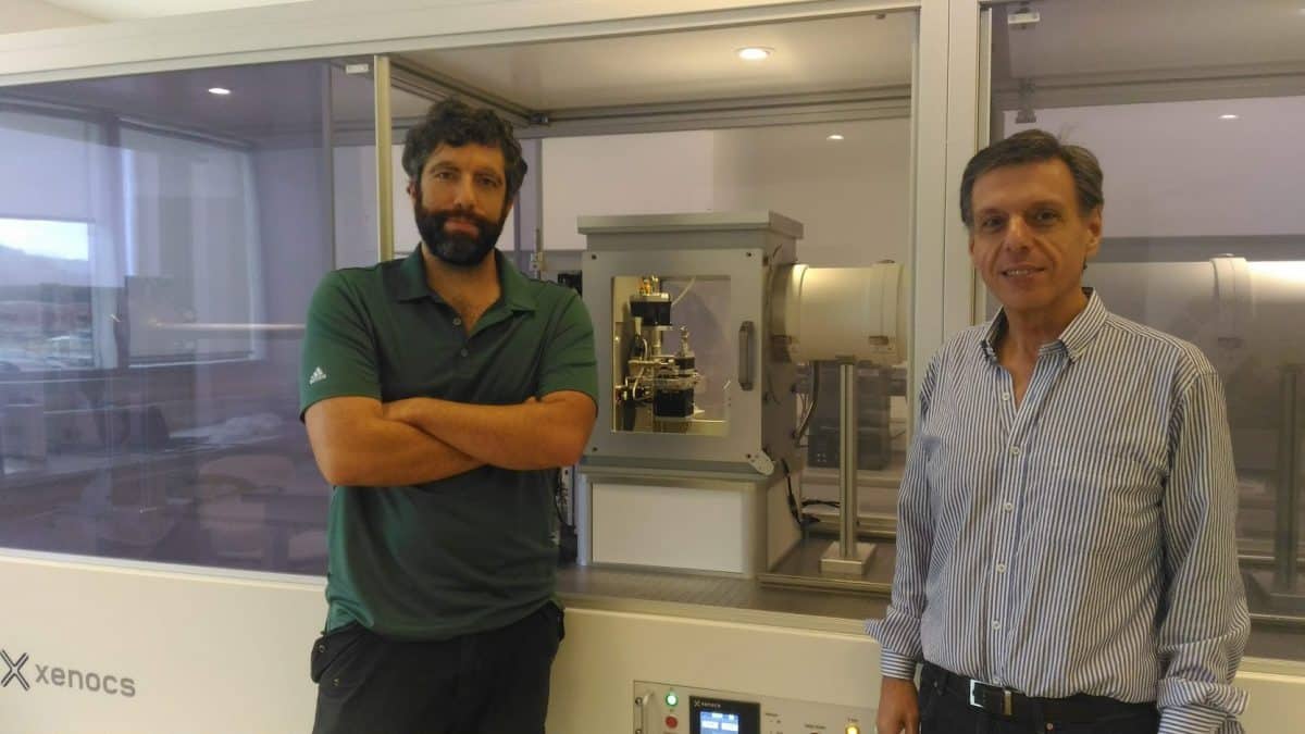 Dr C. H. Iriart and Dr D.G. Lamas in front of the Xeuss SAXS/WAXS instrument at the National University of San Martín, Argentina.